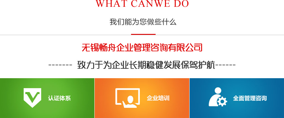 無錫暢舟企業(yè)管理咨詢有限公司是一家專業(yè)從事企業(yè)管理咨詢,技術(shù)咨詢,品質(zhì)管理等咨詢以及相關(guān)認(rèn)證咨詢服務(wù)和培訓(xùn)的企業(yè),公司主要業(yè)務(wù)包括:企業(yè)管理咨詢;企業(yè)運(yùn)營模式咨詢;6S管理;精益生產(chǎn);現(xiàn)場管理;ISO9001質(zhì)量管理體系認(rèn)證咨詢;ISO14001環(huán)境管理體系認(rèn)證咨詢;ISO45001職業(yè)健康安全管理體系認(rèn)證咨詢;ISO20000 IT服務(wù)管理體系認(rèn)證咨詢;ISO27001信息安全管理體系認(rèn)證咨詢;3C認(rèn)證咨詢;3A認(rèn)證咨詢;服務(wù)認(rèn)證咨詢;IATF16949汽車行業(yè)質(zhì)量管理體系認(rèn)證咨詢;軟件能力成熟度模型CMMI 3級(jí)到5級(jí)等認(rèn)證咨詢;